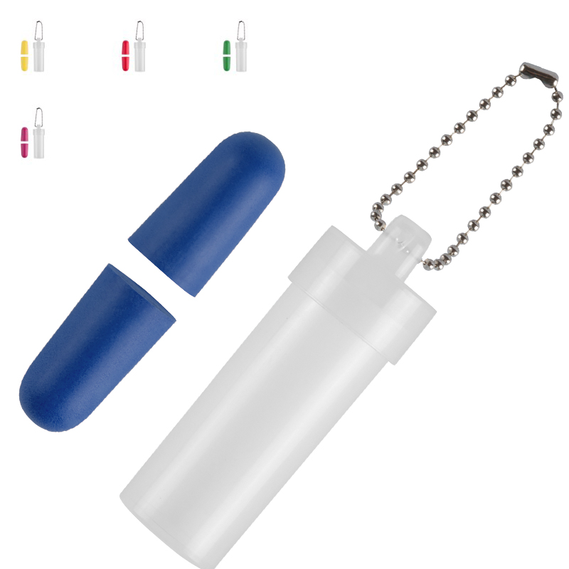 Gekleurde EVA oordopjes in transparant plastic verpakking met metalen ketting.