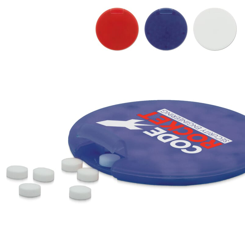 Rond en plat pepermuntdoosje.