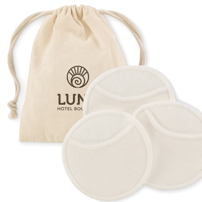 3 stuks herbruikbare en wasbare zachte gezichtsreinigingspads (diameter 8 cm) gemaakt van 70% bamboevezel en 30% katoen in katoenen zakje met trekkoord.
