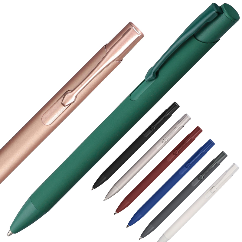 Gerecycled aluminium balpen met een rubberen coating op de houder.