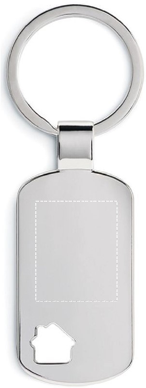Metalen sleutelhanger met uitsparing in de vorm van een huisje.