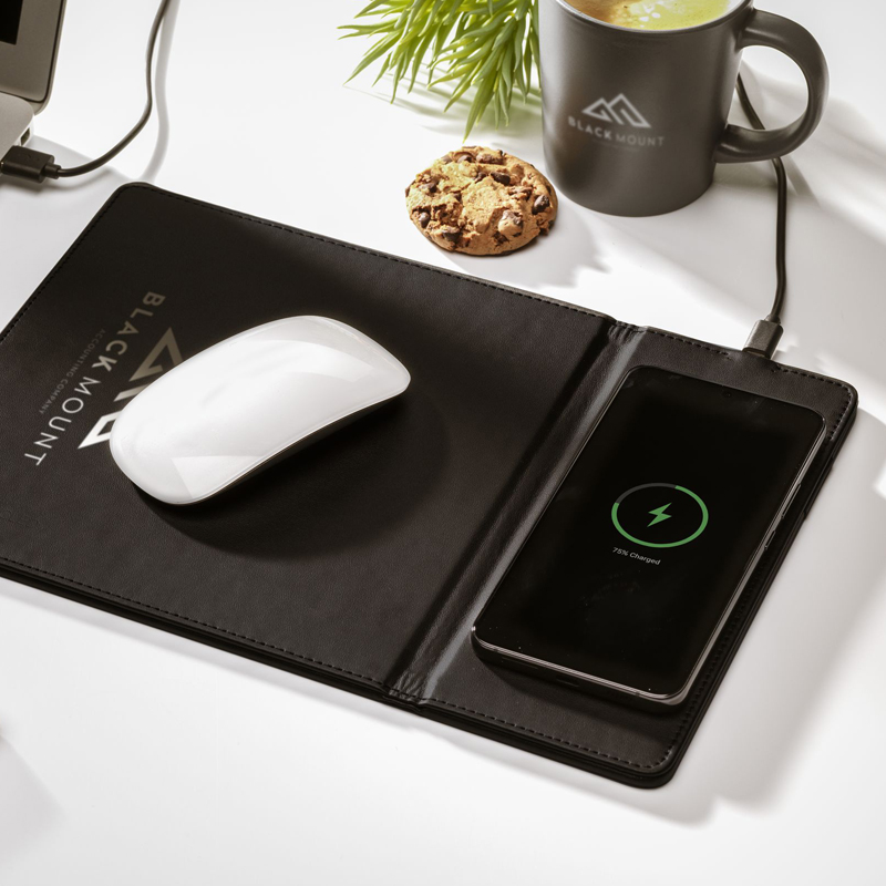 Op deze muismat kun je moeiteloos je muis navigeren en daarnaast kun je je smartphone opladen.