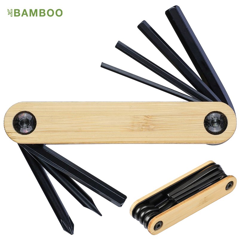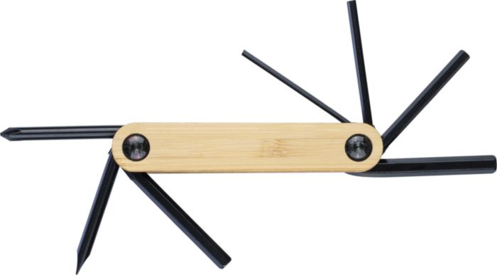 Bevat 7 gereedschappen: inbussleutels, kruiskopschroevendraaier en platte schroevendraaier.