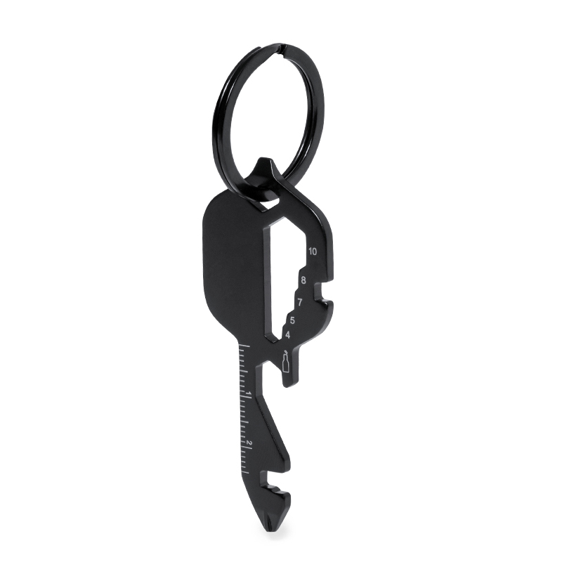 Met 13 functies, waaronder platte en kruiskopschroevendraaier, inbussleutel in verschillende maten, liniaal en flesopener.