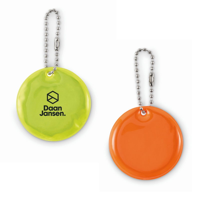 Ronde reflecterende sleutelhanger van PVC.