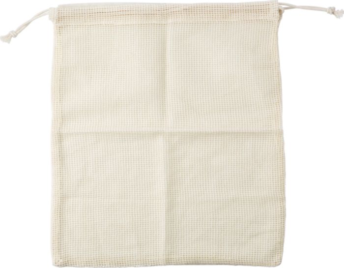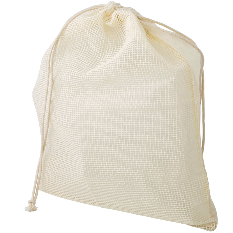 100% Organisch katoenen groente– en fruitzakje met net aan één zijde en een trekkoordsluiting.