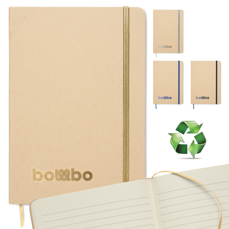 A5 notitieboekje met harde gerecycled kartonnen kaft.