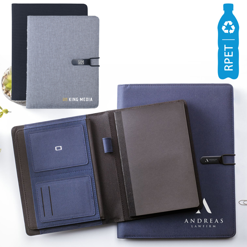 Moderne schrijfmap/documentenmap gemaakt van RPET-materiaal (gerecyclede PET-flessen).