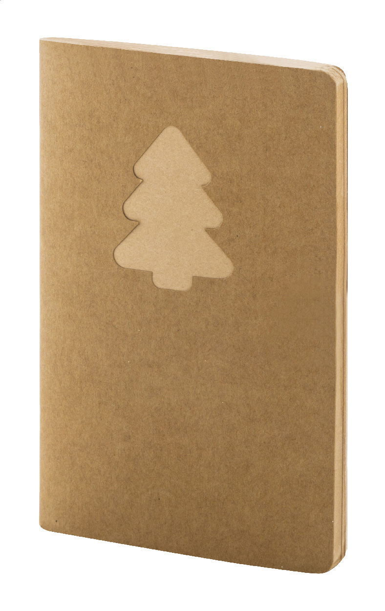 Gerecycleerd kraftpapier bedekt notitieboekje met gestanste kerstboom en 60 blanco vellen in gerecycled kraftpapier.