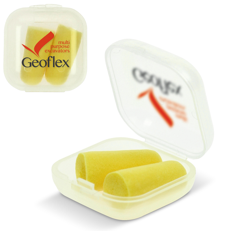 Twee zachte oordopjes handzaam verpakt in een transparant doosje.