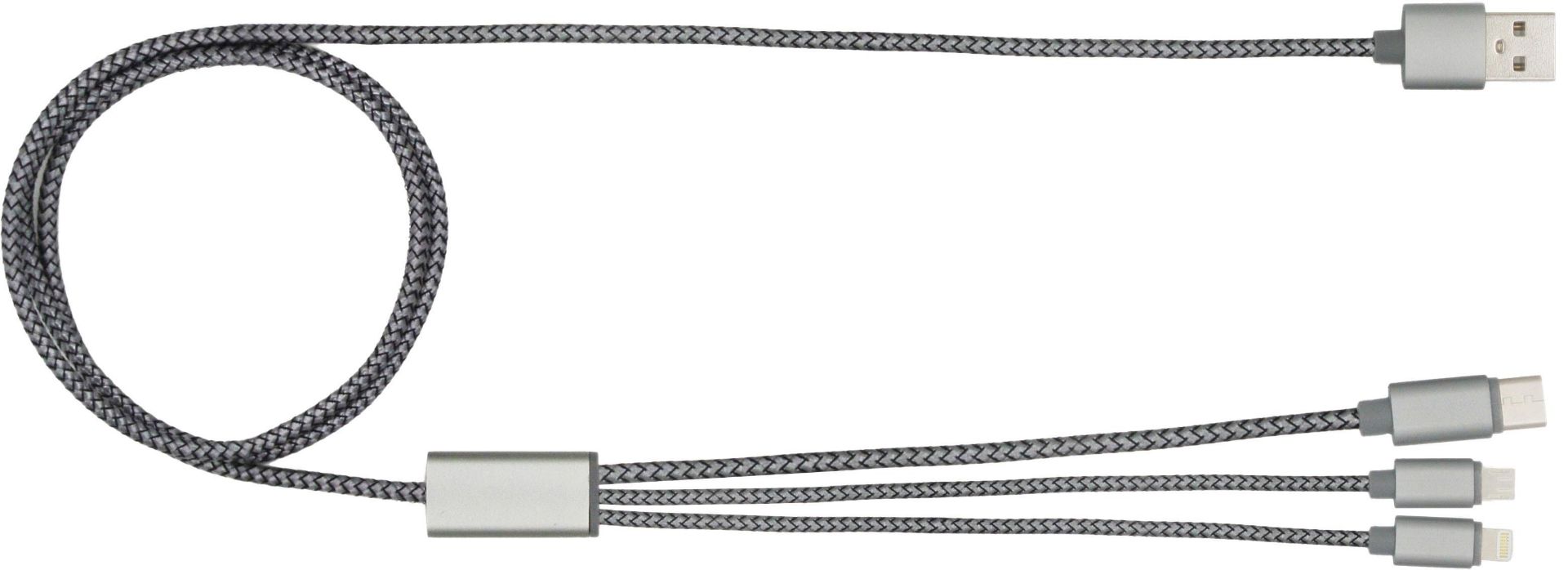 Deze USB–A naar Micro/Type–C/Lightning kabel garandeert betrouwbaar opladen voor alle compatibele apparaten, met maximaal 10W laadvermogen.