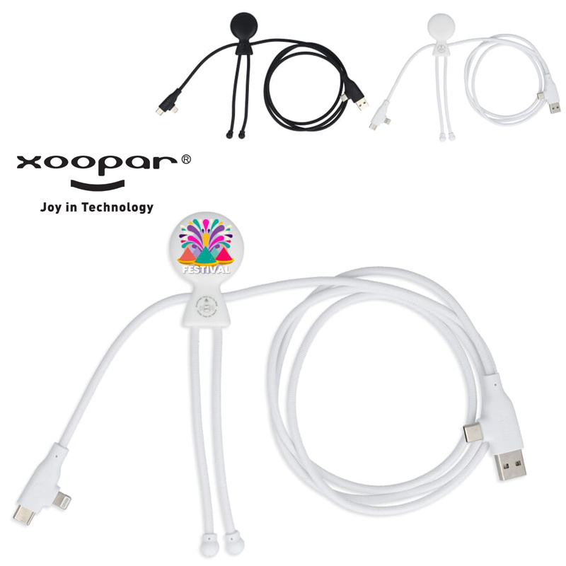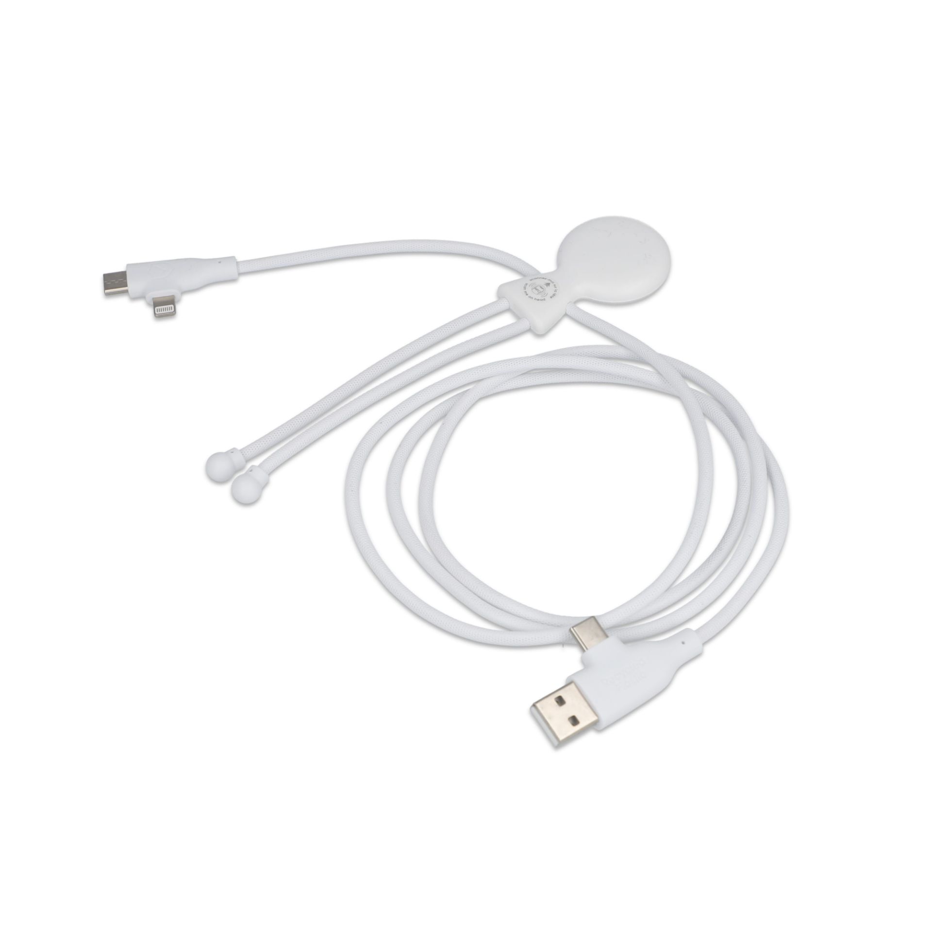 De Xoopar Mr Bio Long is een 1,2 meter multikabel met USB-A & USB-C input en USB-C & Lightning output.