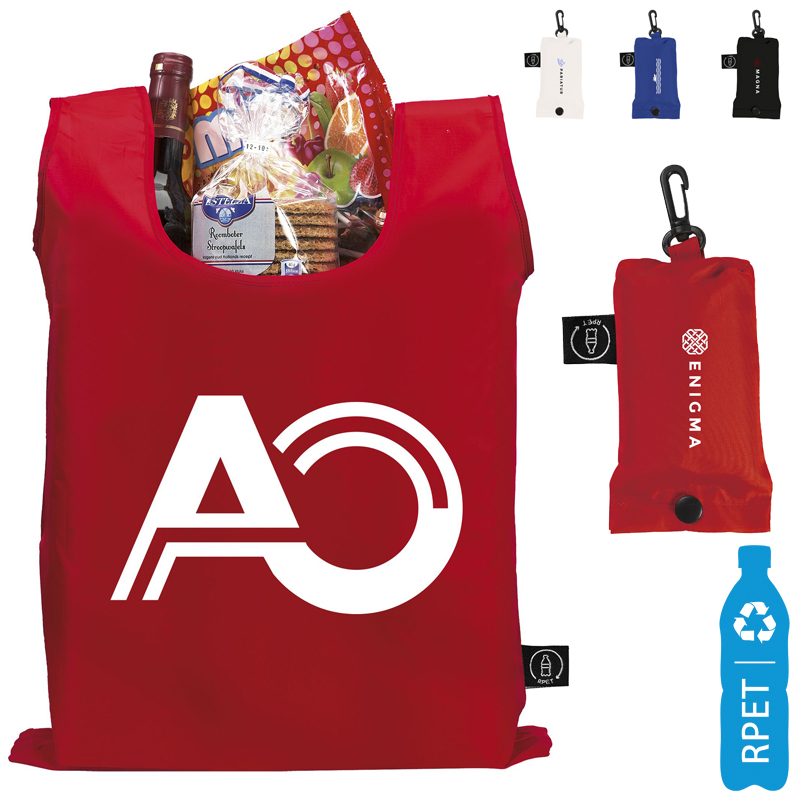 Opvouwbare winkeltas van 190T RPET polyester; gemaakt van gerecyclede PET-flessen.