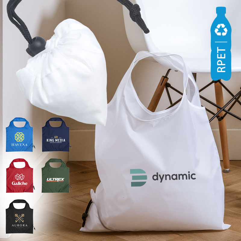 Opvouwbare, royale winkeltas van RPET polyester, gemaakt van gerecyclede PET-flessen.