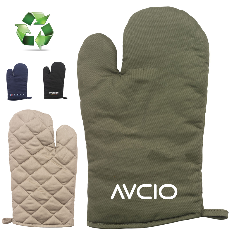 Dikke, gewatteerde ovenwant gemaakt van pre-consumer gerecycled katoen (90 g/m2).