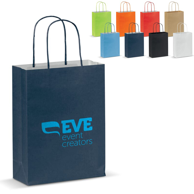 Kleine mat papieren draagtas met hengsels van gedraaid papier.