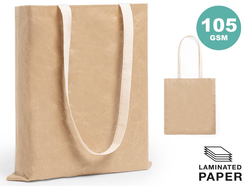 Natuurlijn zak van gelamineerd papier van 105g/m², zeer bestendig.