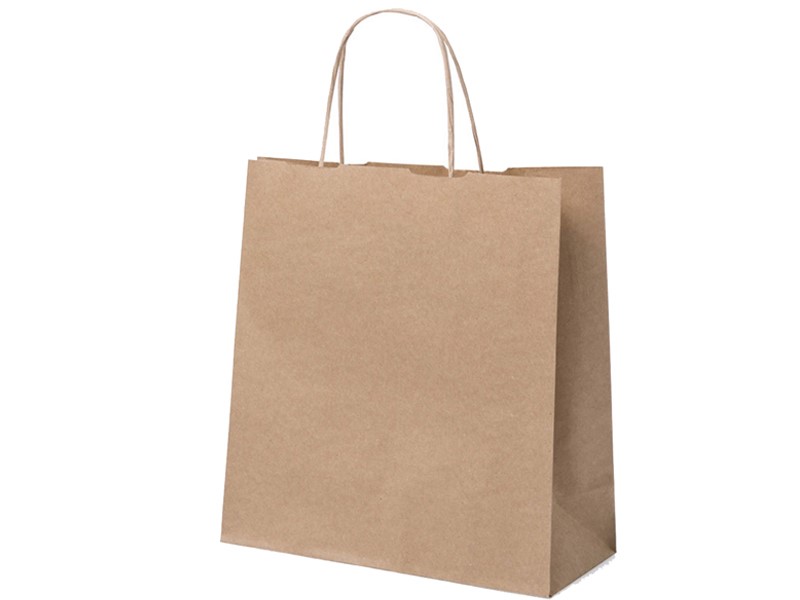 Tas van natuurlijk papier 100 g / m² met versterkte korte handvaten en hoeksteunen.