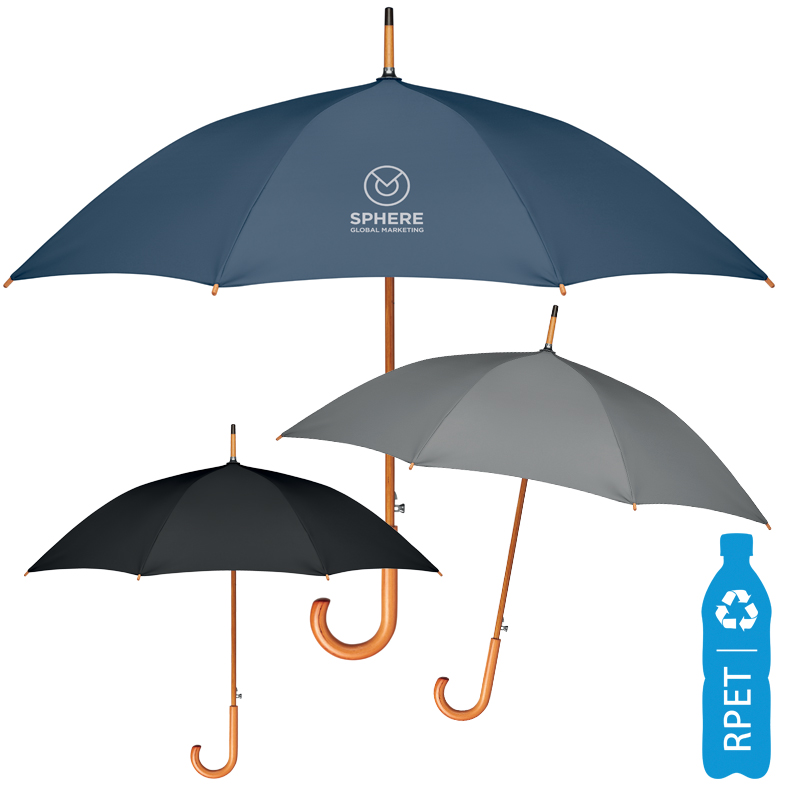 190T RPET pongee met houten steel, uiteinden en top.
