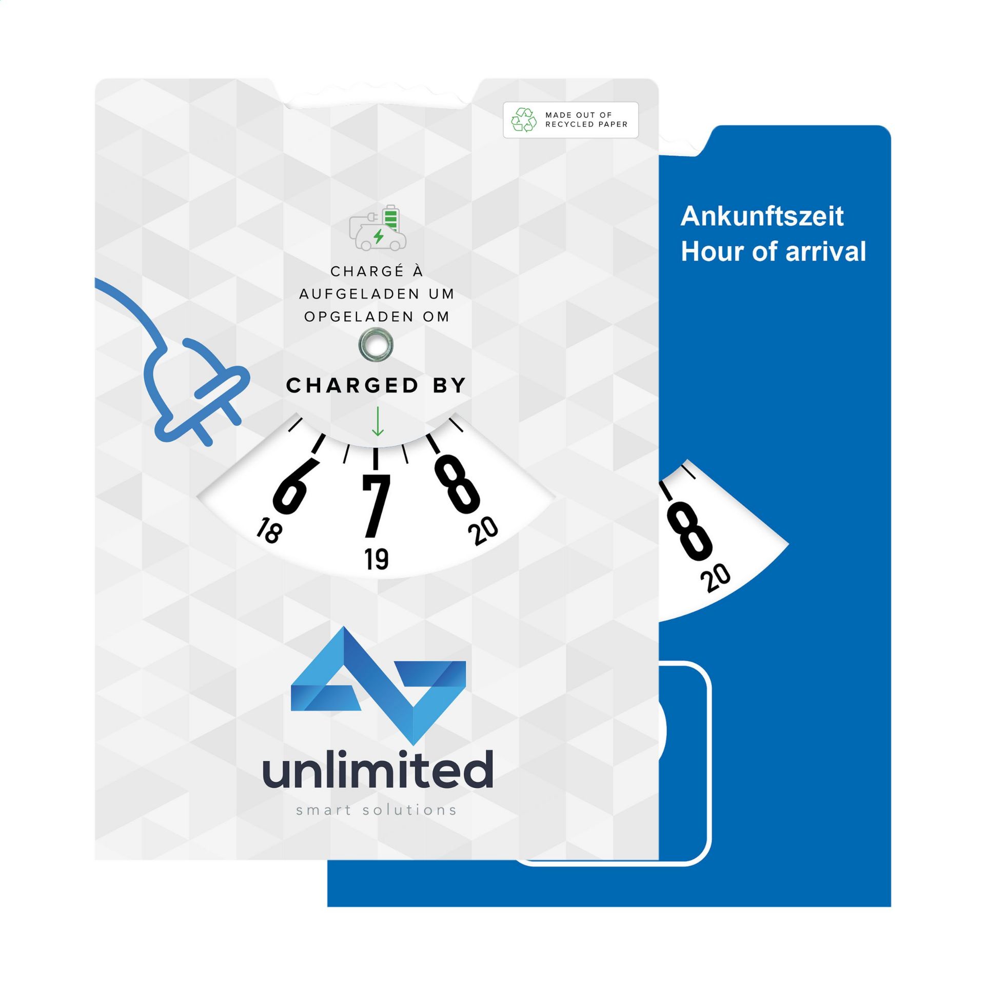 De andere zijde heeft een normale parkeerschijf voor blauwe zones.