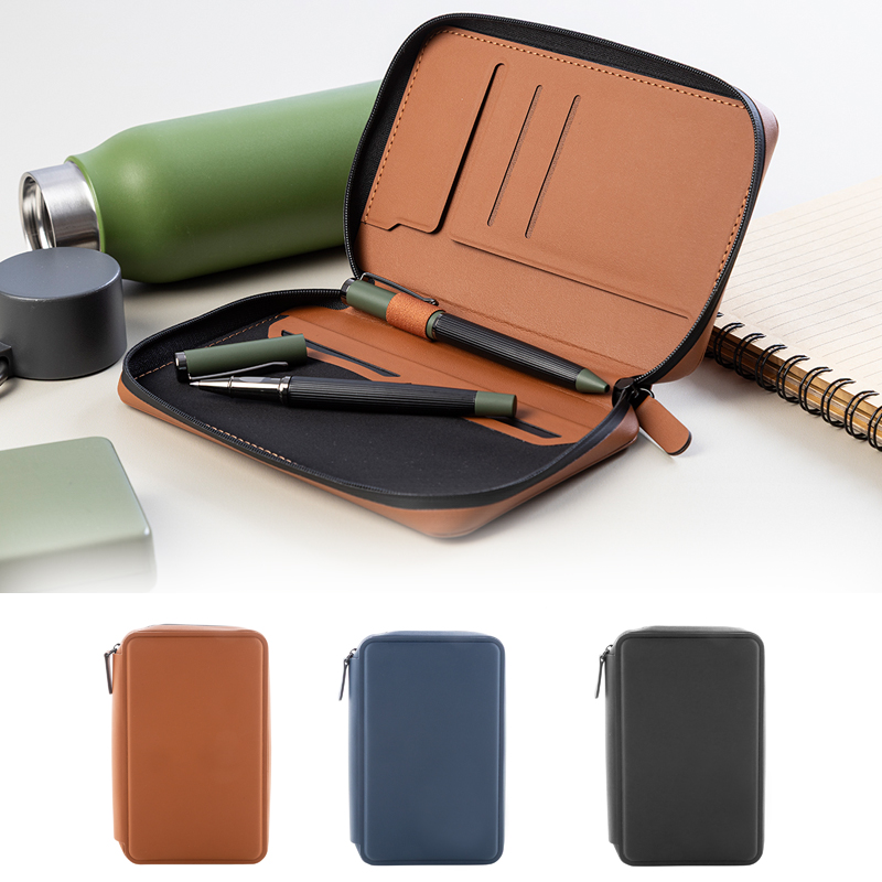 Luxe reisorganisator met ritssluiting en paspoortkoffer van gerecycled PU-leer.