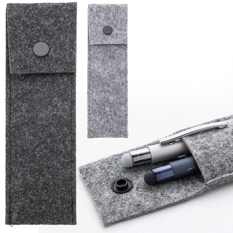 RPET vilten pennenkoffer met knoopsluiting, voor 2 pennen.