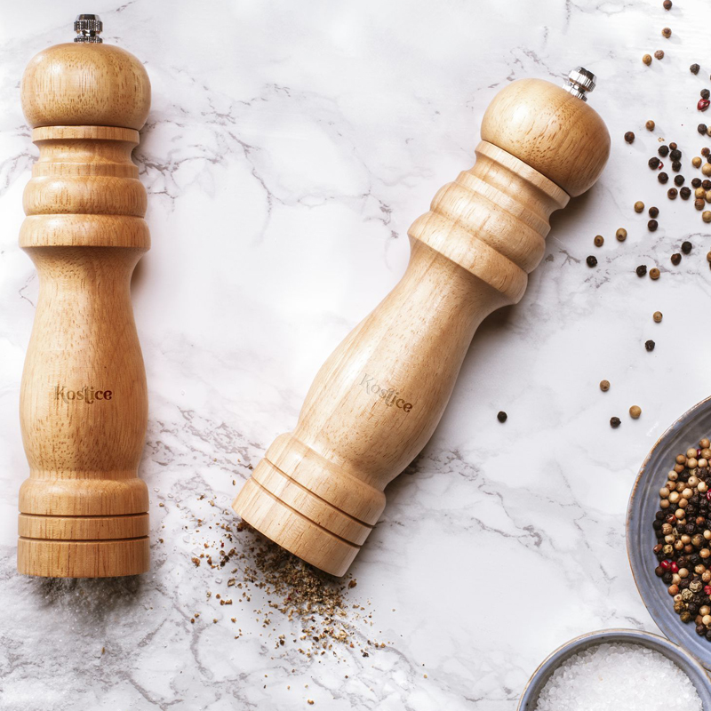 Set bestaande uit een zoutmolen en pepermolen van rubberwood.