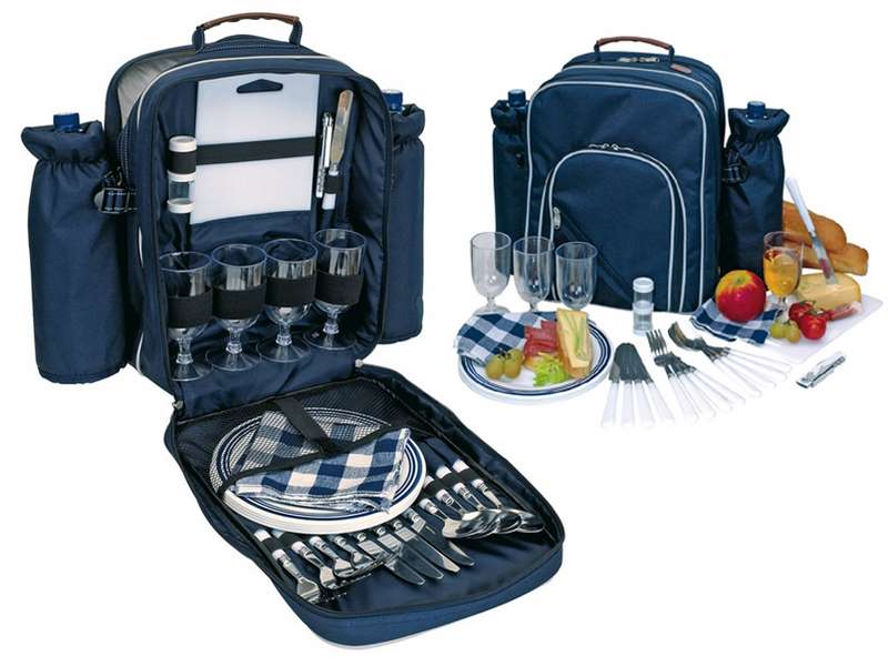 Picknick rugtas hyde park voor 4 personen met messen, vorken, lepels en snijplankje.