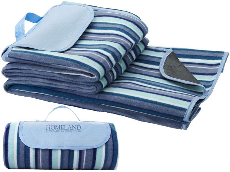 Picknickdeken met waterafstotende bekleding en handige draaggreep.