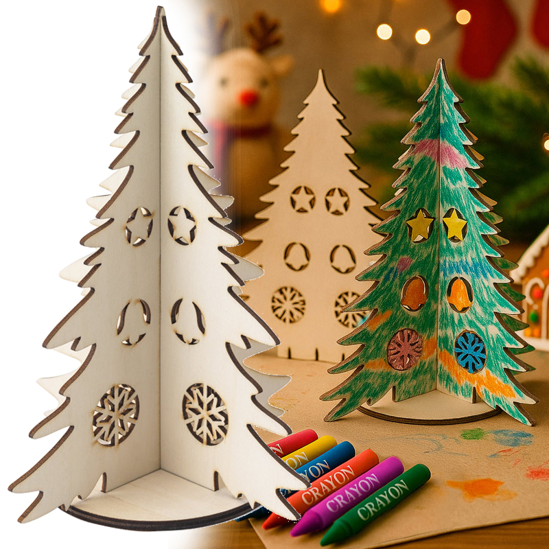 Inklapbare houten kerstboom om in te kleuren, gemaakt van FSC™ gecertificeerd materiaal en andere gecontroleerde materialen.