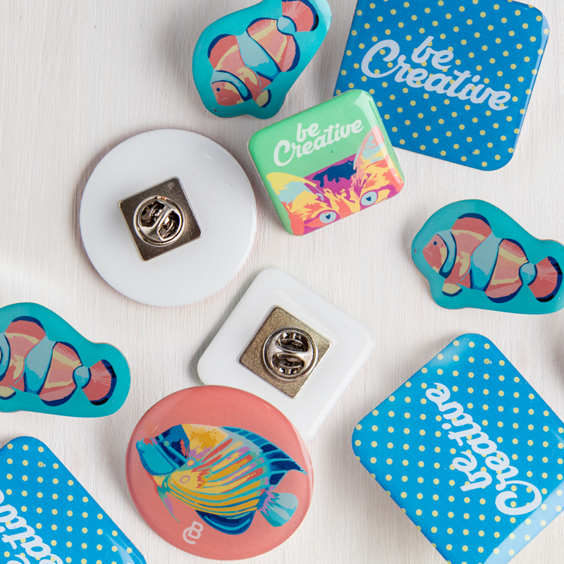 Custom made epoxy doming badge met metalen pin, met custom artwork.