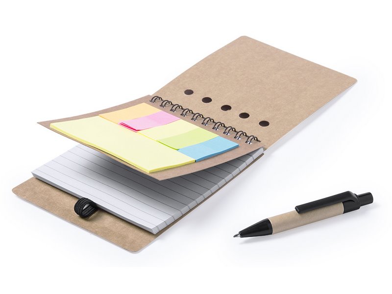 Notitieblok met gerecycelde kartonnen balpen inbegrepen.