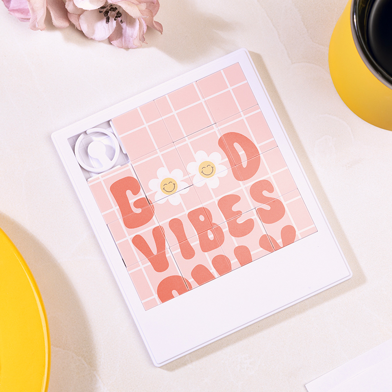 Groot formaat, gerecyclede ABS schuifpuzzel met bedrukbaar oppervlak.