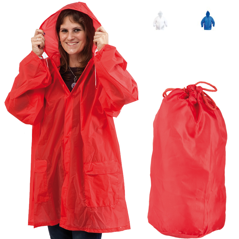 Regenjas met capuchon, met drukknoopsluiting.