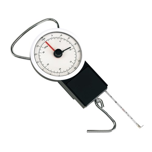 Bagage weegschaal BALANCE (tot 32 kilo) met haak en geïntegreerde 1 meter rolbandmaat.