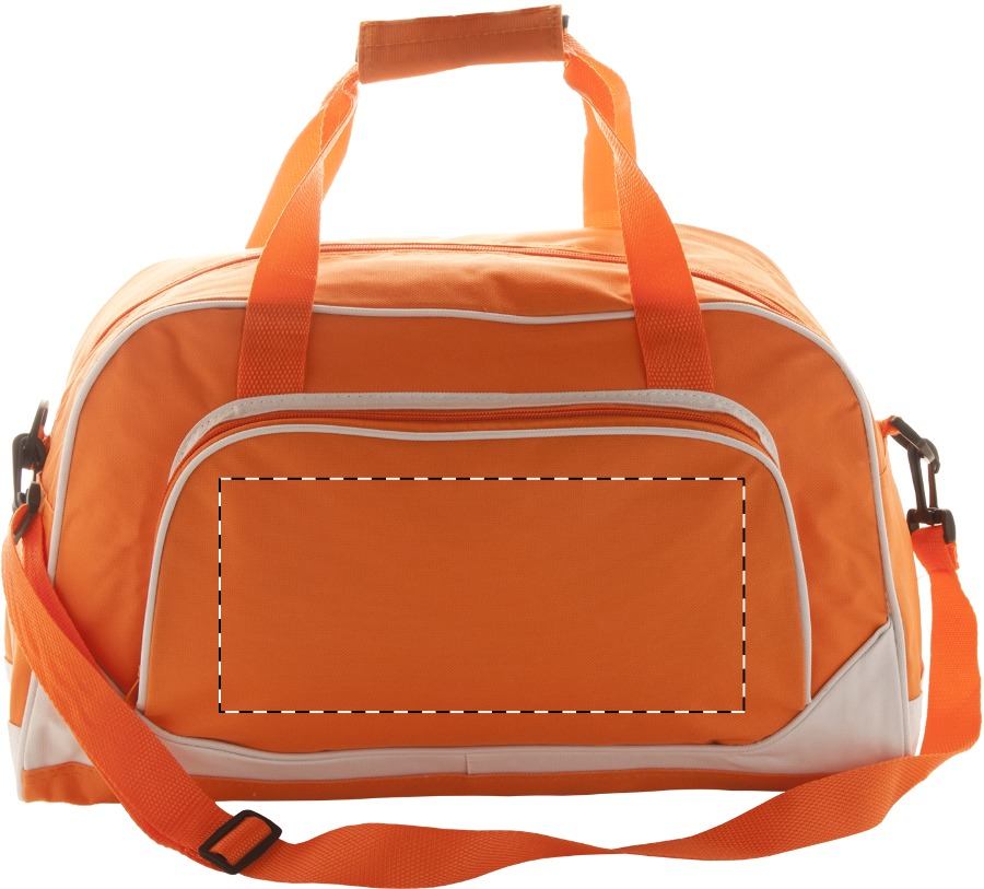 600D polyester sporttas met ritssluiting, voorvak met ritssluiting en verstelbare schouderband.