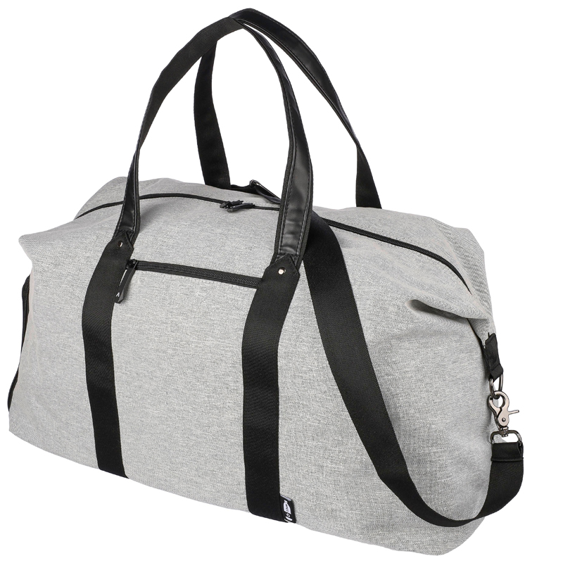 600D rPETpolyester sporttas met 150D PU voering en PU lederen details.