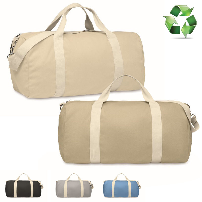Reis–/ sporttas van gerecyclede stoffen (60% gerecycled katoen, 40% gerecycled polyester) in 320gr/m2 met hengsels van natuurlijk katoen en een verstelbare en afneembare schouderriem.