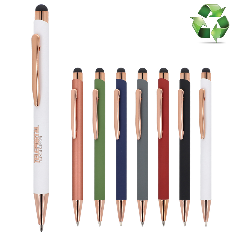 De rosékleur komt terug in de accenten van de balpen en de lasergraveerkleur.