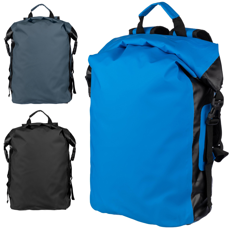 Waterafstotend zeildoek (250D) roll–top rugzak met een groot compartiment.