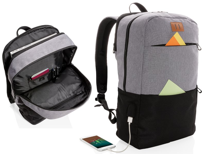De laptop rugtas is gemaakt van duurzaam materiaal en heeft een sportief, op de stad geïnspireerd ontwerp.