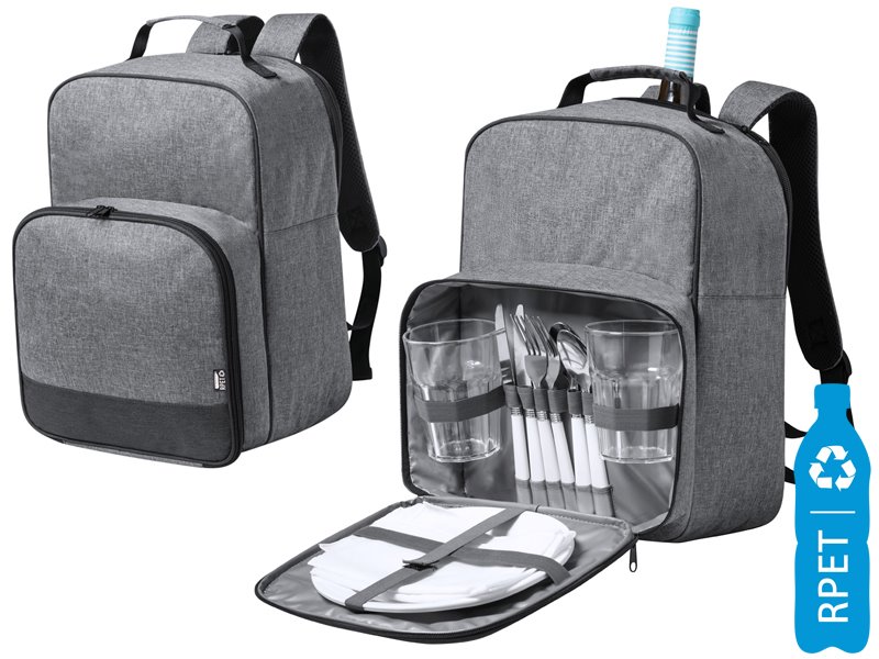 RPET picknick koelrugzak met gewatteerde banden en rug, koelvak met PEVA-vulling.