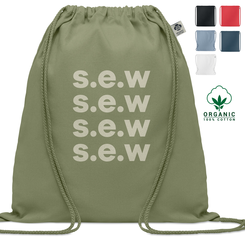Katoenen rugtas met trekkoordsluiting van gecertificeerd biologisch katoen.