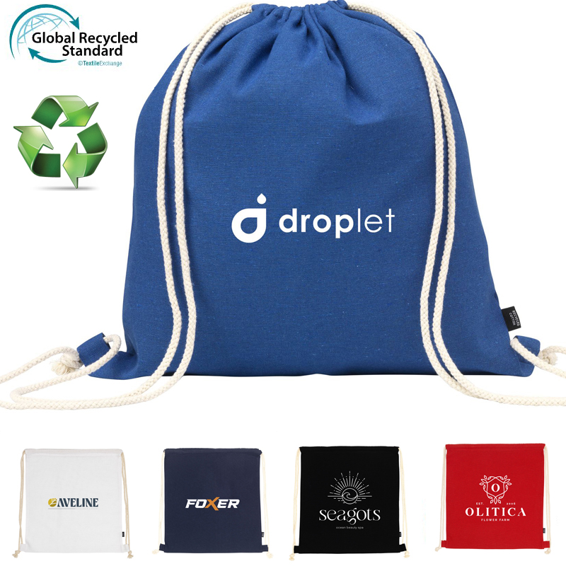 Rugzak met aanrijgkoorden van 80% gerecycled katoen en 20% gerecycled polyester (150 g/m2).