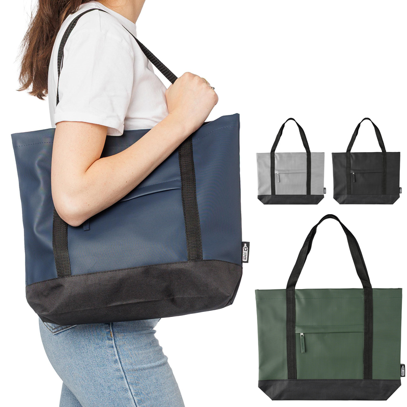 rPET polyester (600D) draagtas met waterafstotende PU–coating aan beide zijden.