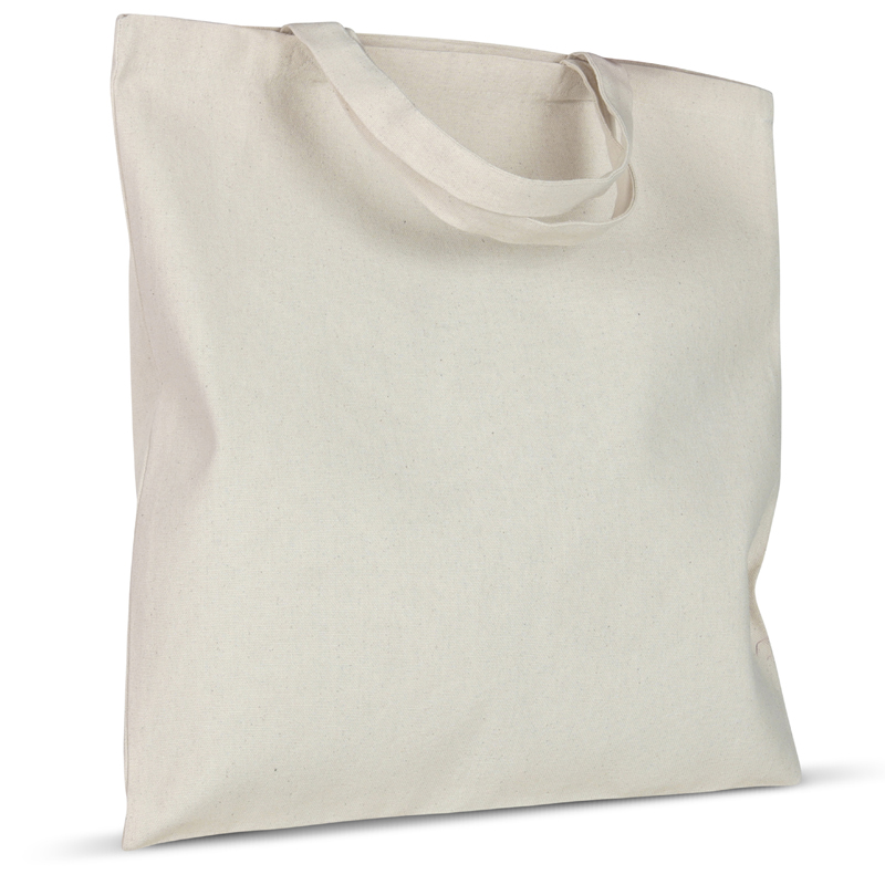 Klassieke katoenen schoudertas met kortere hengsels, ideaal voor promotionele activiteiten en conferenties.