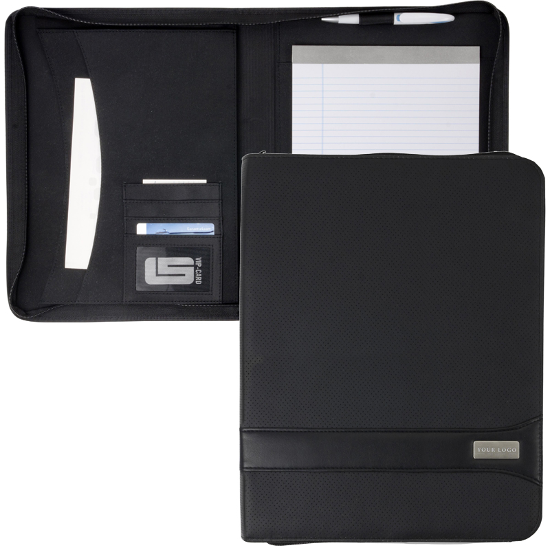 PVC documentenmap 'geperforeerd' (A4) met ritssluiting en met twee grote en vier kleine insteekvakken en penlus.