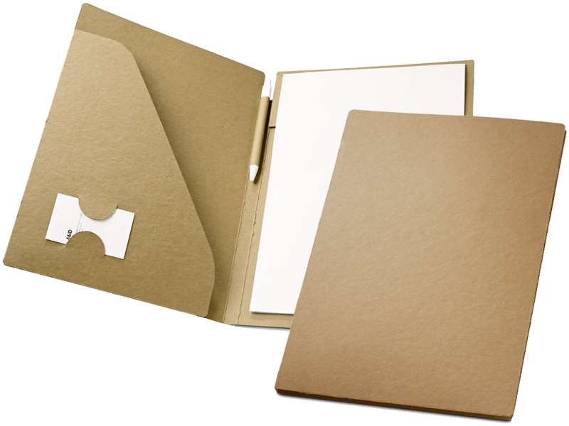 Deze map bevat een notitieboek met 20 gelinieerde recycled vellen en een balpenhouder inclusief pen.