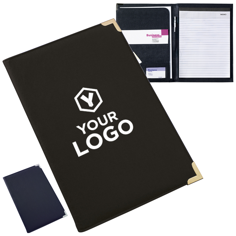 PU documentenmap (A4), met metalen hoeken en diverse insteekvakken, excl schrijfblok en pen.