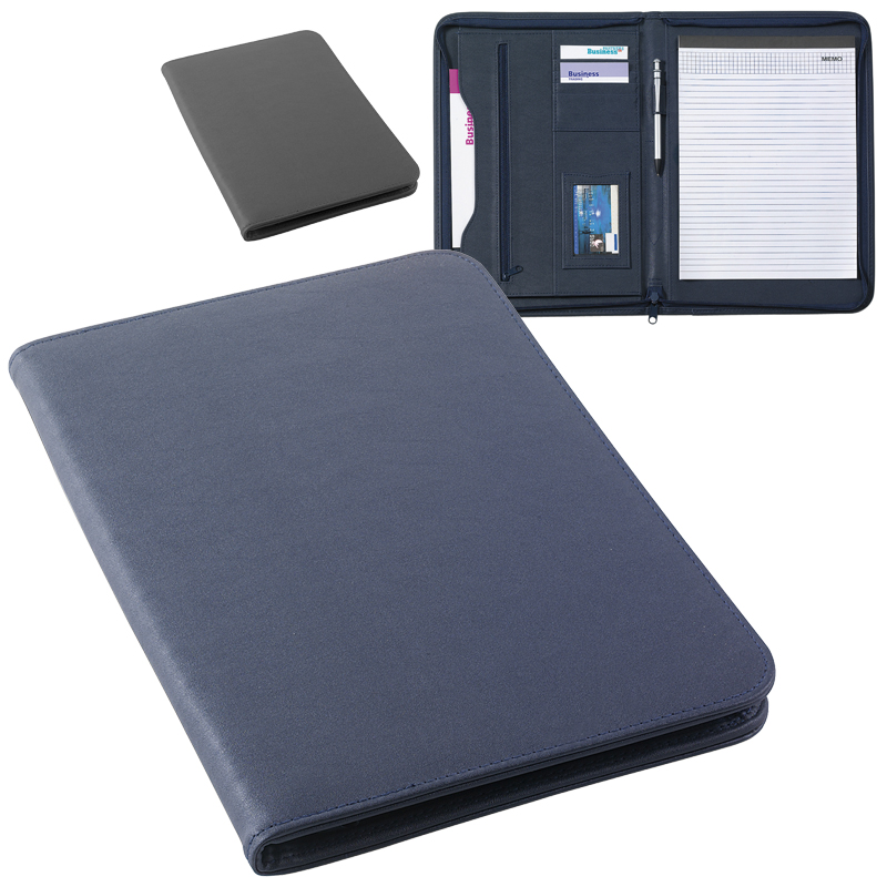 PU documentenmap (A4), met ritssluiting en diverse insteekvakken, excl schrijfblok en pen.